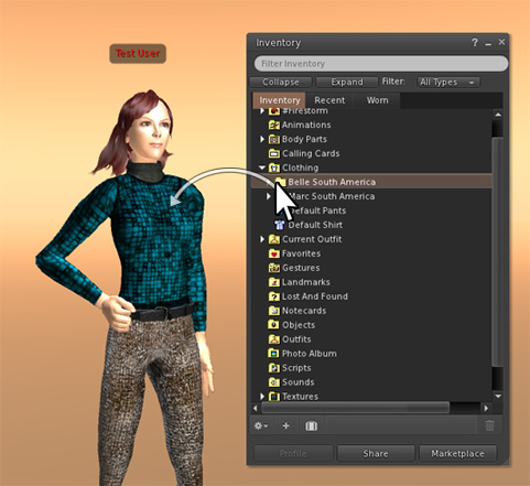 - Right-click on the shirt and choose Wear. Your avatar might be wearing some other clothing on their torso, but just ignore them for now.