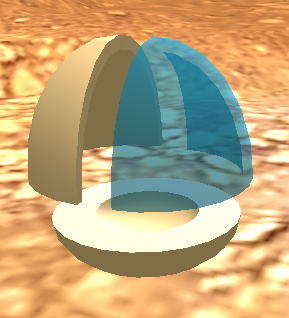 We will create a helmet from three separate piece, as shown below. All three pieces are based on spheres, with parameters changed to chop-off unwanted bits.