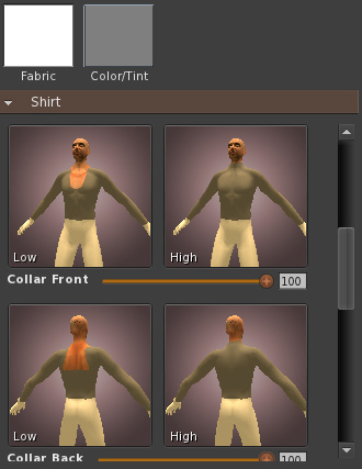 - In the section underneath, scroll down the list to Collar Front and Collar Back.