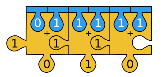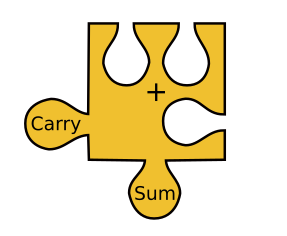 In a previous article we looked at using the logic gates in integrated circuits to add binary numbers. We can think of the half-adder that we created as being like a jigsaw piece.