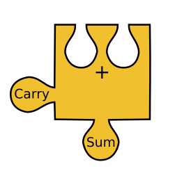 What we need is jigsaw piece that can accept a carry bit, as well as producing one. This is called a full-adder: