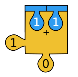 You can attach the two bits that you want to add at the top. The outputs are a sum bit and a carry bit.