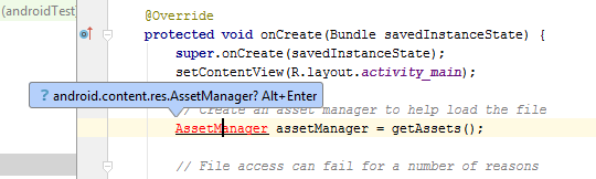 When you first paste it in you'll get a lot of underlined red - indicating errors. Hopefully it's only because you're using bits of code (classes) without saying that you're going to in advance (import). Luckily there’s an easy option to fix this in Android Studio. Just click on the red text, and you should see a message that you can press Alt+Enter to fix the problem. What it's actually doing is going to the top of the program and adding import statements.