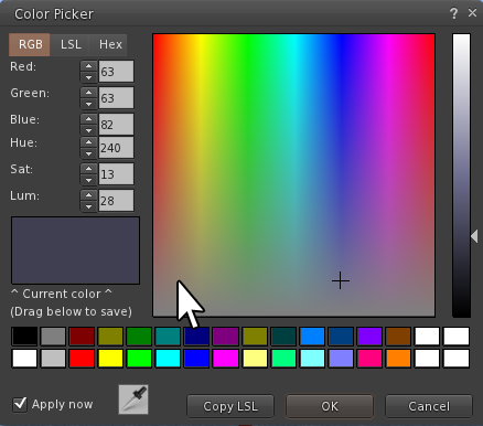 - Click on the coloured box for BluHrz to open the Color Picker.