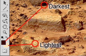 - Click on the darkest area of the rocks to set the foreground colour.